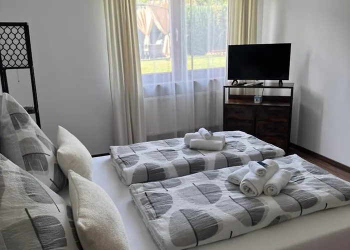 Doté d'une cuisine complète faisant partie de ses équipements indépendants, l'appartement offre également à ses clients un coin repas pour prendre leurs repas. Il est situé près de l'arrêt de bus le plus proche, l'arrêt de bus Am Zehnthof. Les clients sont les bienvenus dans un jardin privé dans le logement.